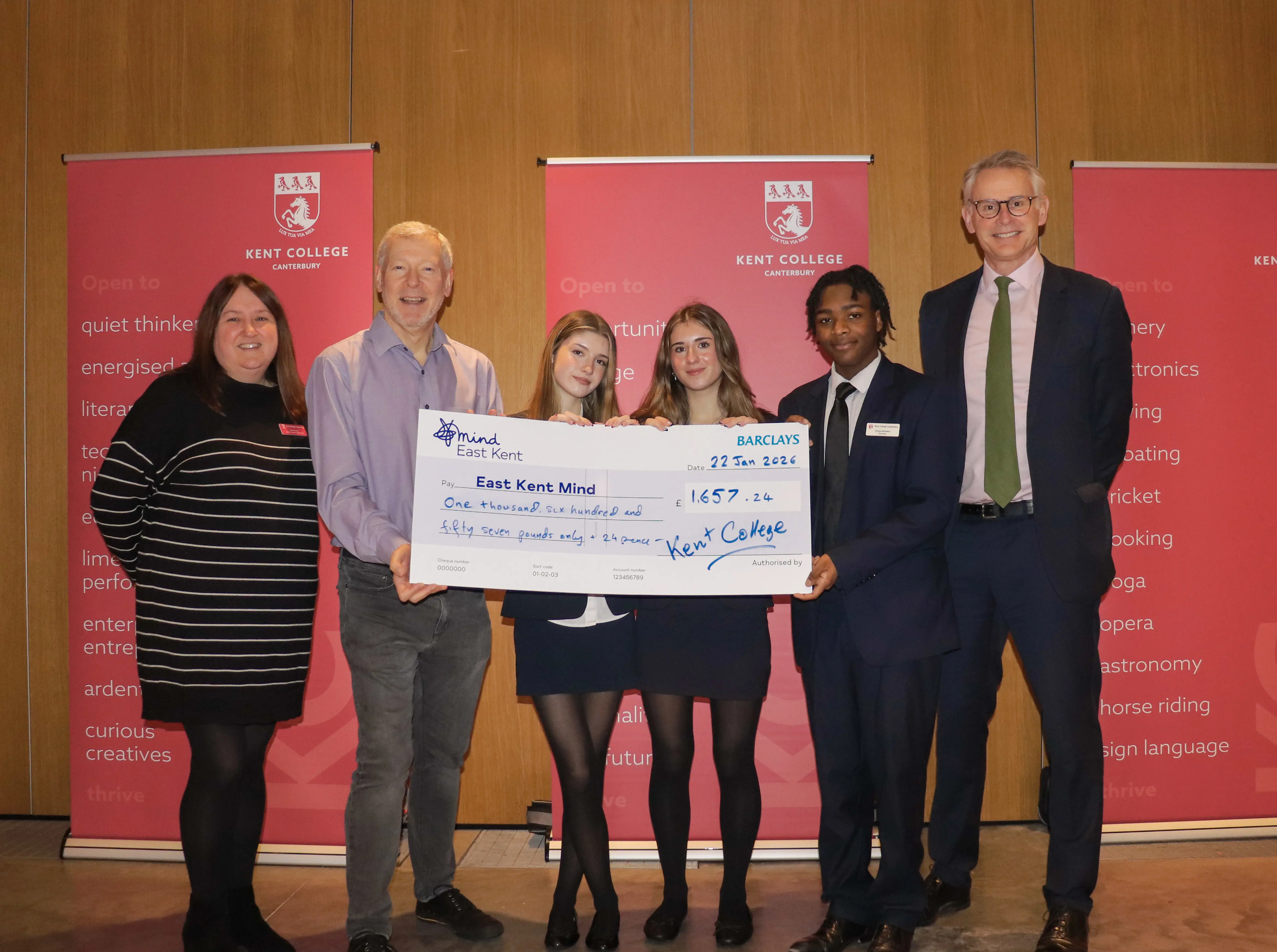 "The charity is enormously grateful to the students and staff at Kent College for supporting our mental health work in the local community. It is vital we tackle stigma surrounding mental health and encourage positive conversations around wellbeing. This donation will help us to achieve that goal."